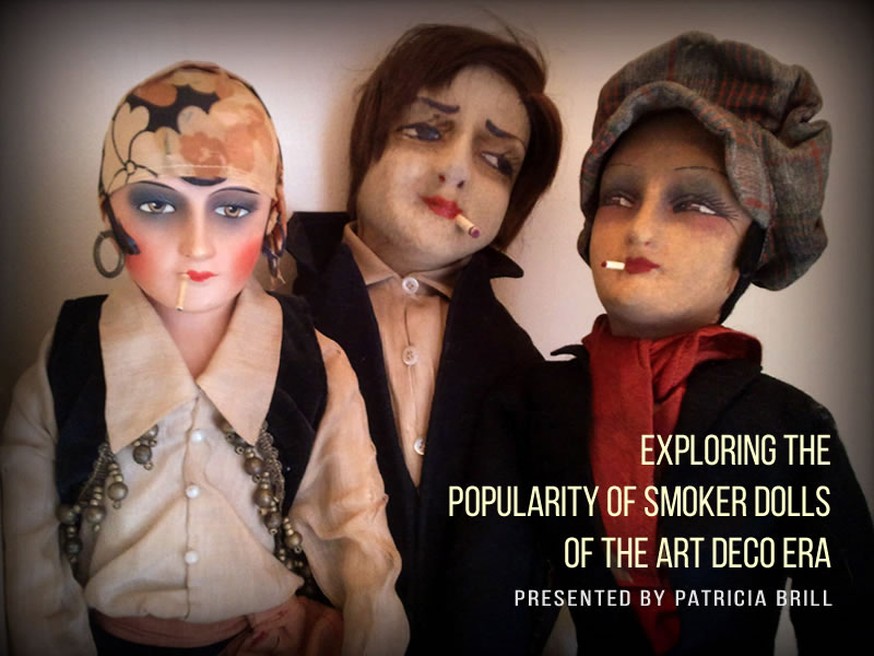 National Doll Club member Patricia Brill (also known as motherxmas), explores the popularity of Smoker Dolls. They were manufactured in the narrow time frame of 1922-1932, during the Art Deco era (1919-1939).